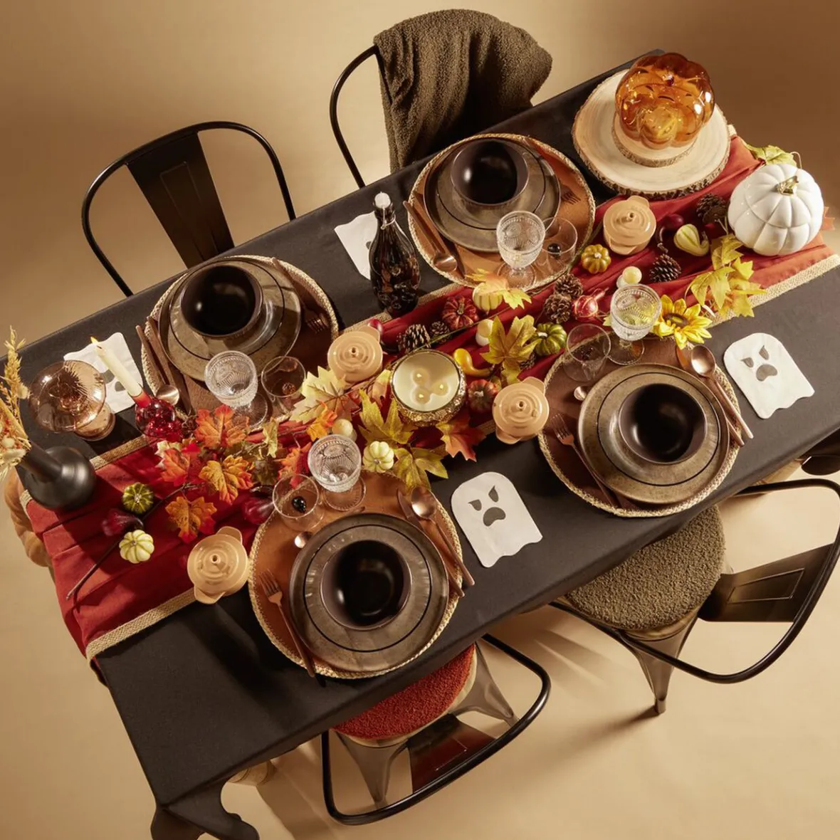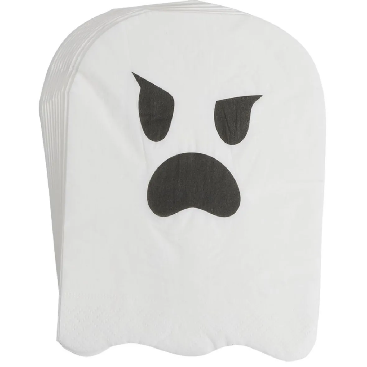 Lot de 20 serviettes jetables en forme de fantôme maléfique blanc et noir, idéal pour décorer votre table d’Halloween.
