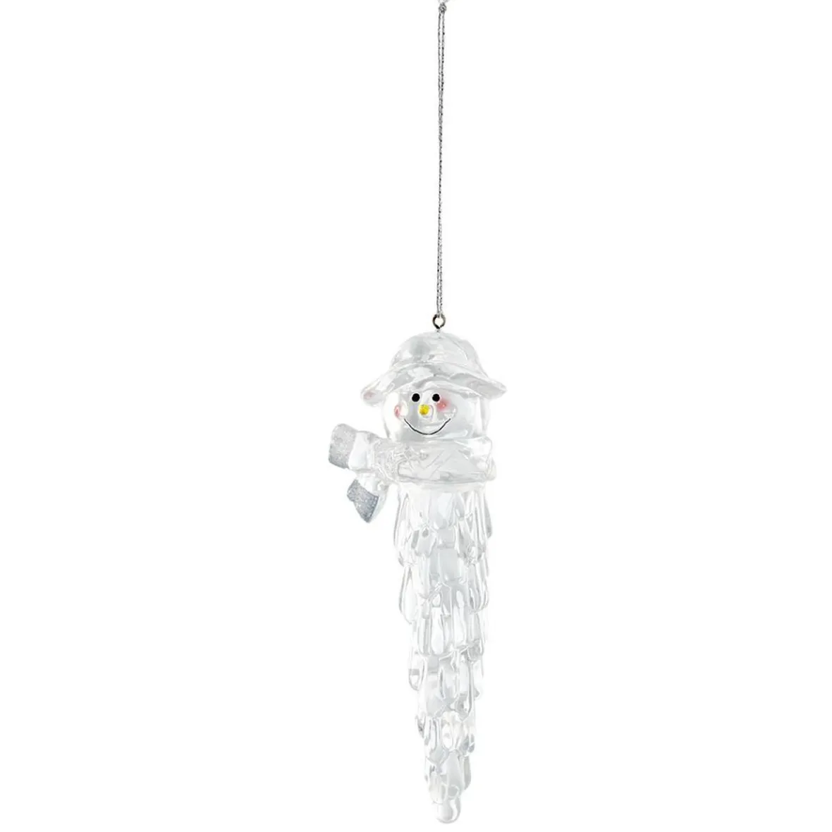 Stalactite de Noël transparente sous forme de bonhomme de neige pour décorer la maison dans une ambiance givrée.
