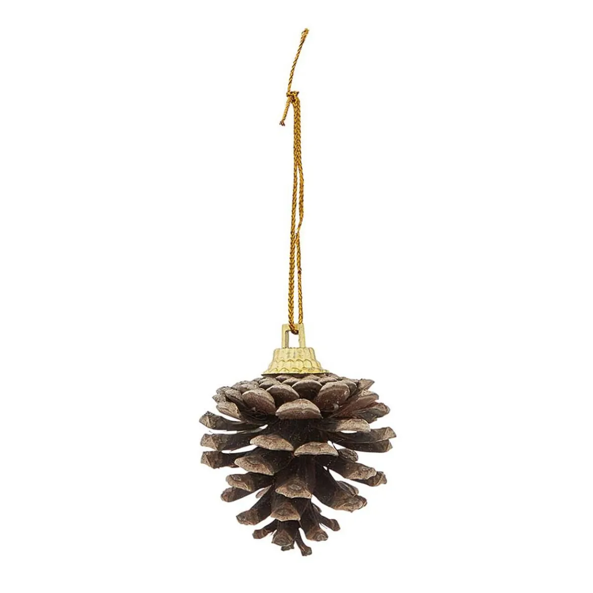 10 suspensions de Noël comprenant 5 boules dorées et 5 pommes de pin de couleur marron.