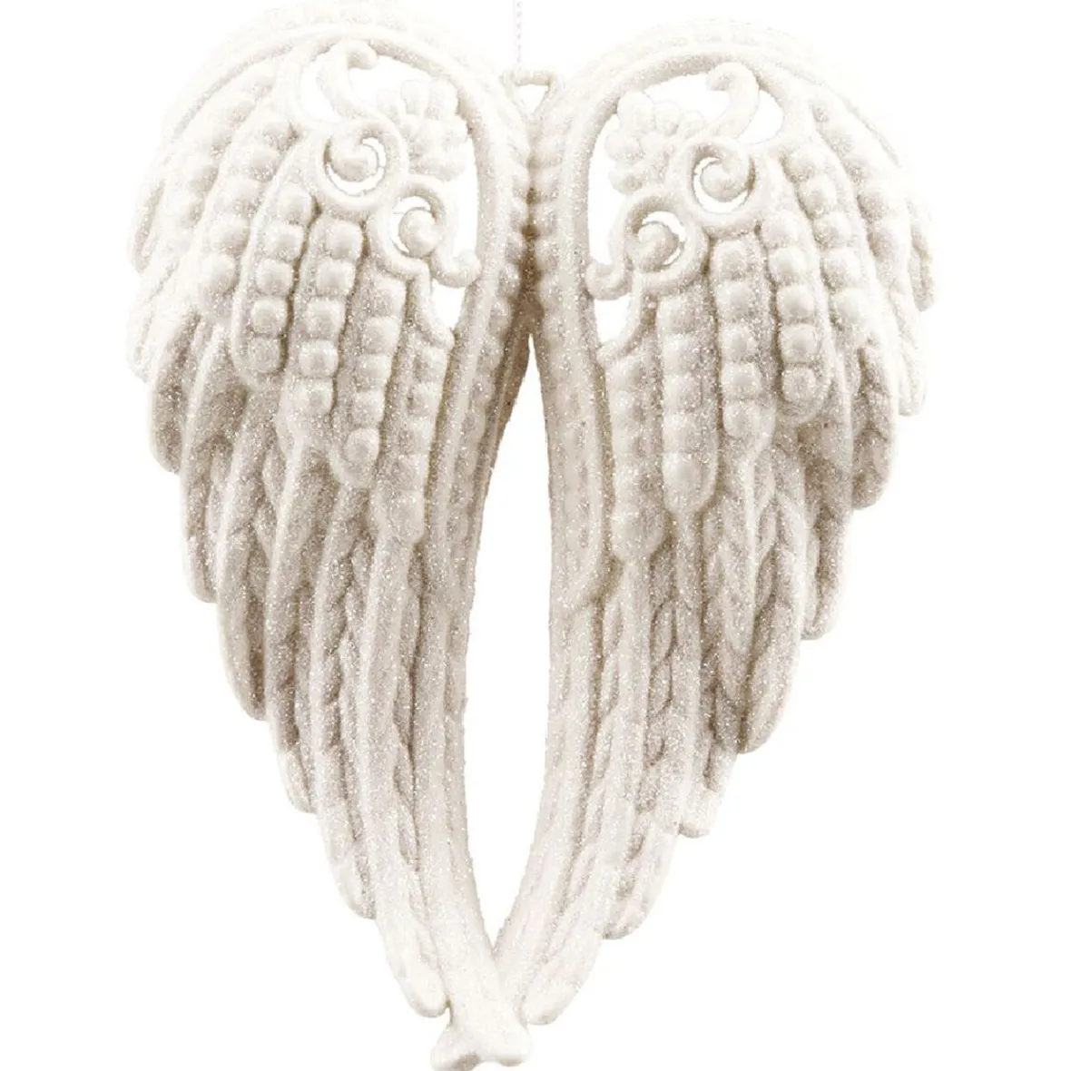 Ailes d’ange pailletés blanc iridescent ou dorées à suspendre à votre sapin ou votre décoration d’intérieur.