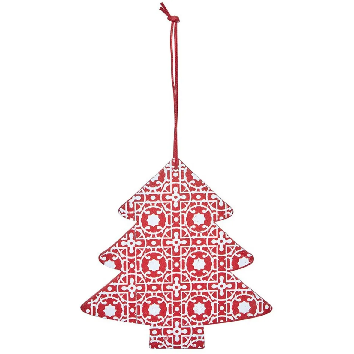 Optez pour une décoration vintage pour votre sapin avec cette suspension en bois imprimé rouge ou vert.